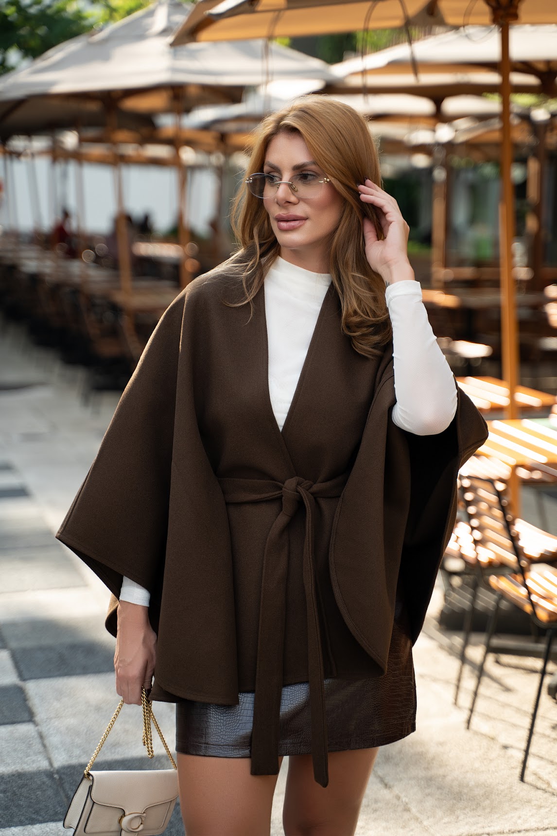 Capa Estela, em lã batida, com caimento estruturado e confortável. Possui detalhe de cinto que permite acinturar a peça, ajustando ao corpo. Modelo em tamanho único, veste do 36 ao 44.